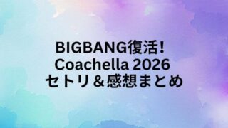 BIGBANGがCoachella 2026で待望の復活!披露されたセトリや感想、テソンの「ナルバキスン」など見どころを詳しくまとめました。