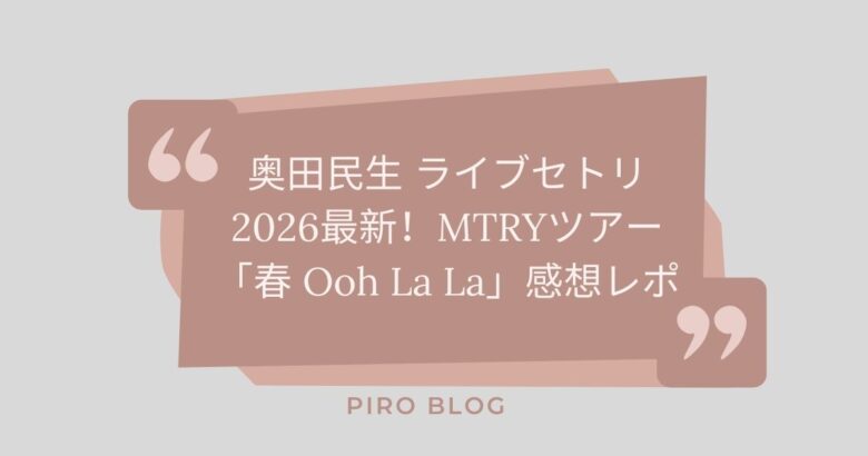 奥田民生ライブ【MTRYツアー2026「春 Ooh La La」】が2026年1月11日からスタートしたセトリは以下の通りです。