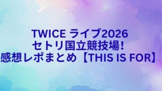 ライブ TWICE ライブ2026 セトリ国立競技場!感想レポまとめ【THIS IS FOR】 TWICEのワールドツアー日本公演となるスタジアムライブ「THIS IS FOR」が、2026年4月25日より国立競技場でスタートしました!今回の公演は、TWICEライブ2026の中でも特に注目度が高く、セトリや演出、定番曲の披露にも大きな... 2026.04.25 ライブ音楽